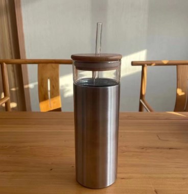 Kunden spezifischer unzerbrechlicher Boro silikat glas becher mit Edelstahl abdeckung, Edelstahl-Thermo becher